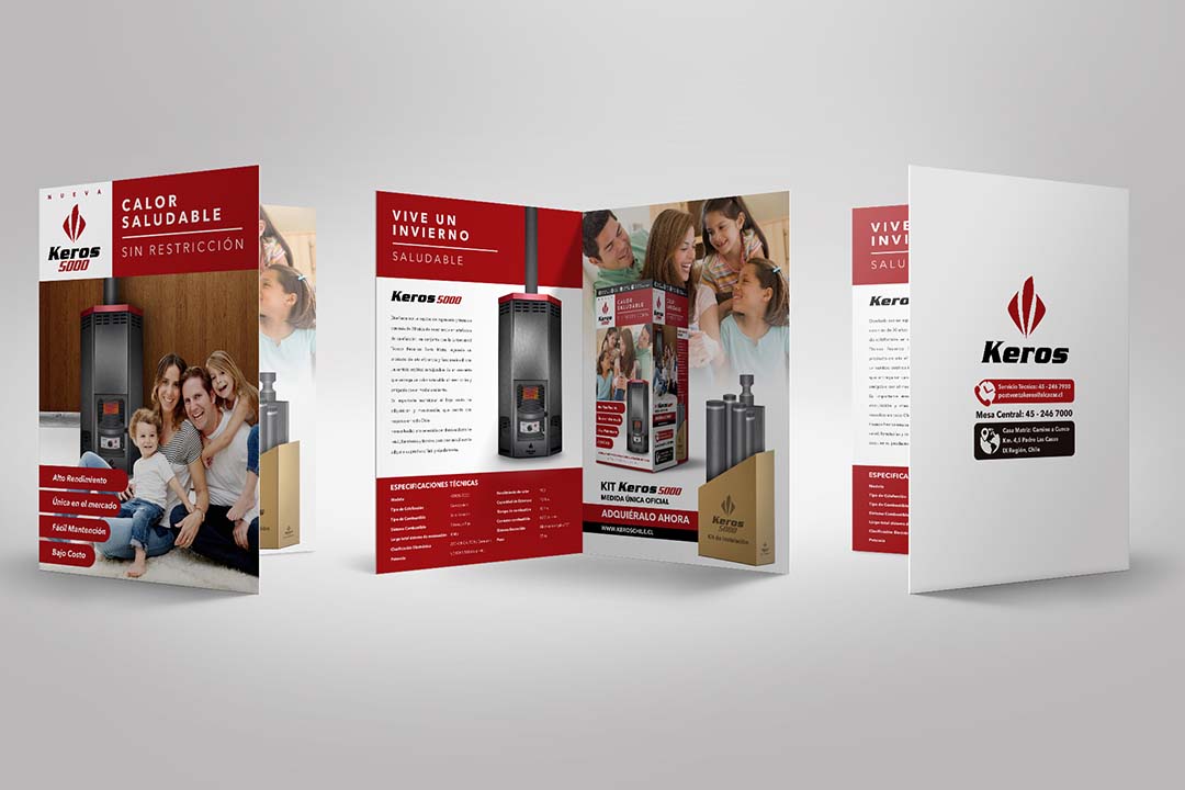 Diseño de estufa digitalmente y Diseño de Díptico