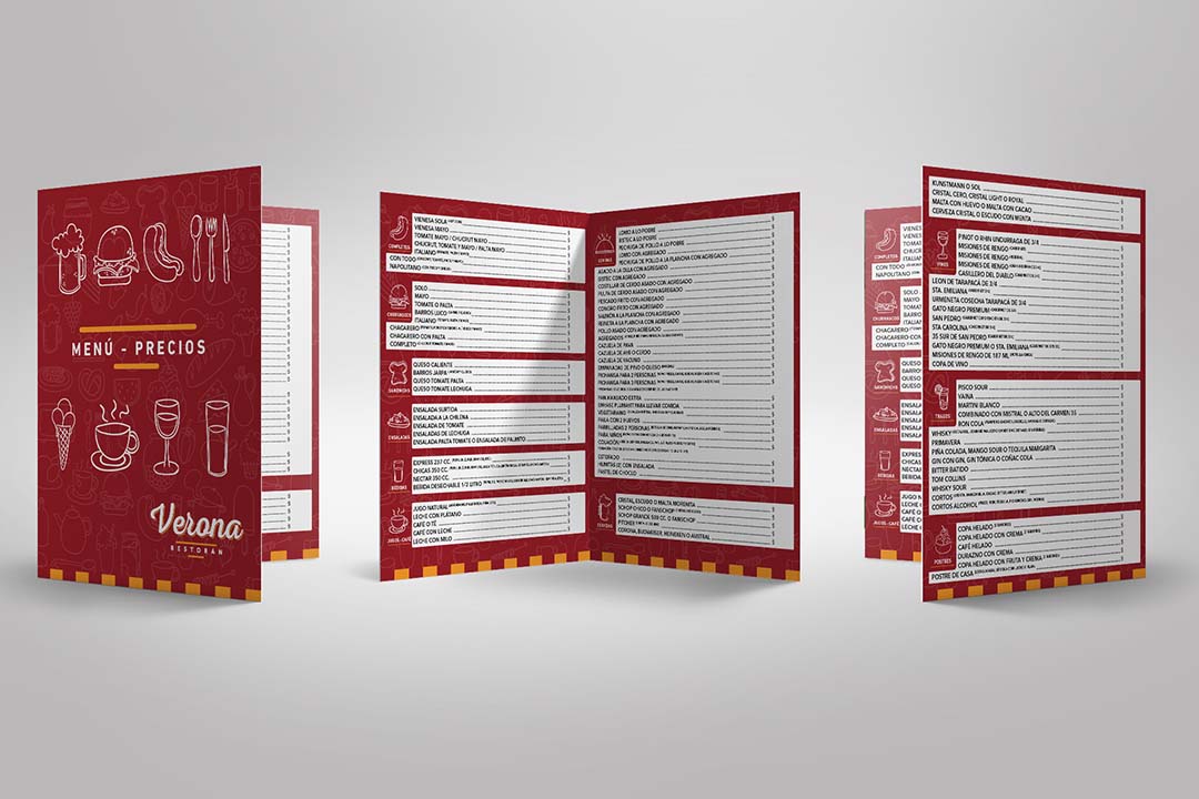 Emprendimiento ubicado en Yumbel, dedicado eal rubro culinario, en este caso se uso el formato para menú