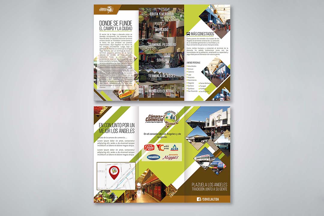 Diseño e impresión de triptico publicitario para el sector vega en Los Ángeles.