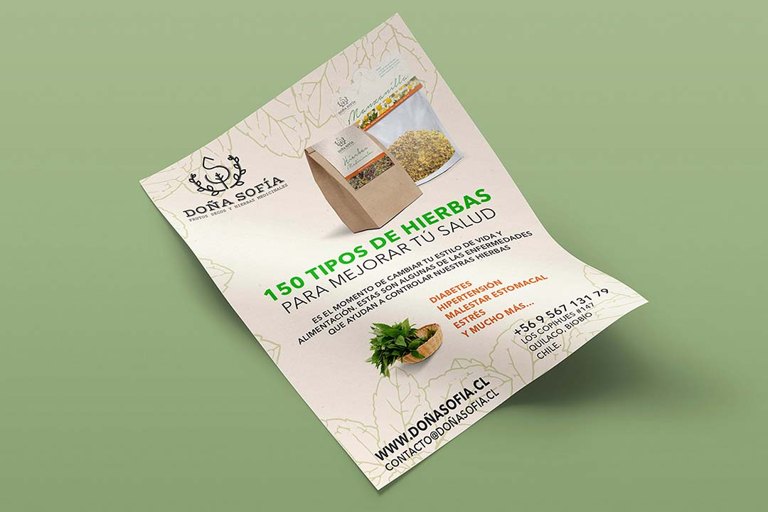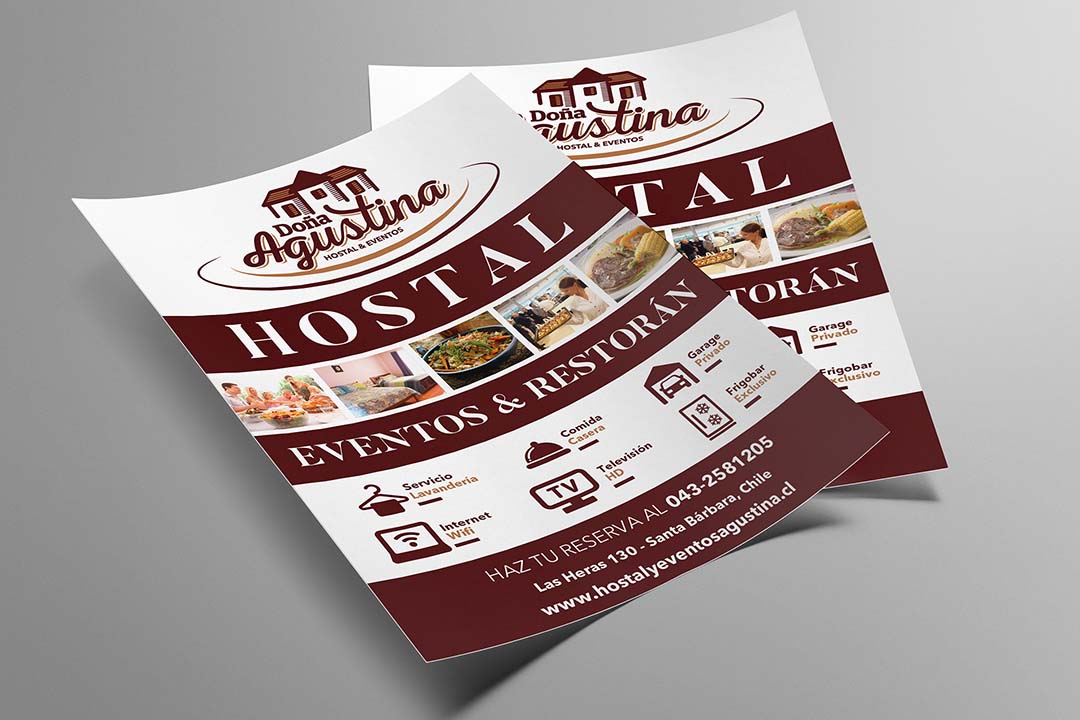 Diseño de flyer publicitario para empresa Doña Agustina, emprendimiento dedicado a hostal y eventos