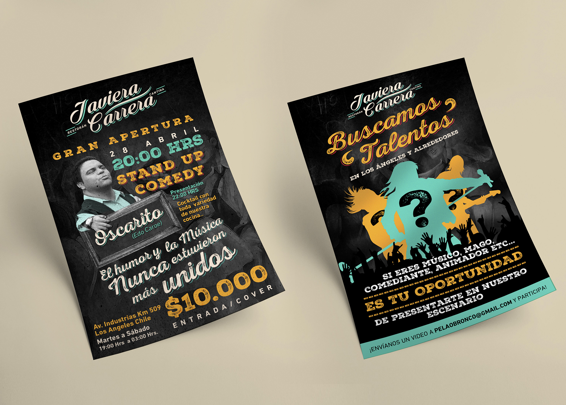 Diseños de flyer para eventos en Restorán Javiera Carrera