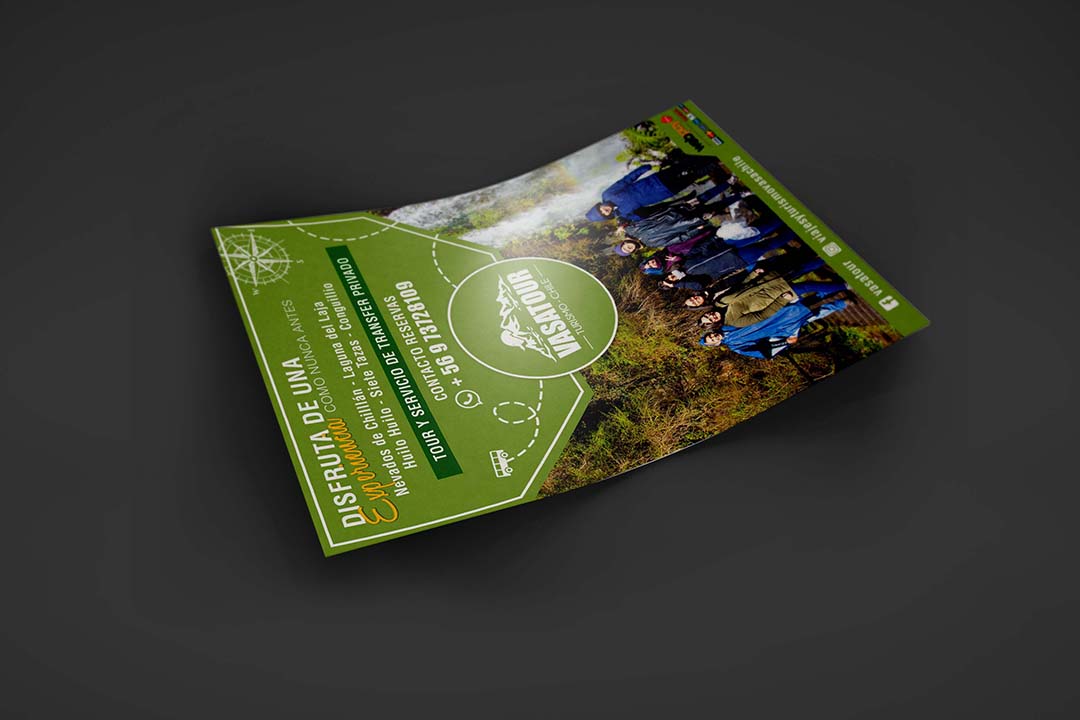 diseño e impresión de flyer 0/4 para empresa de transporte y turismo Vasatour.