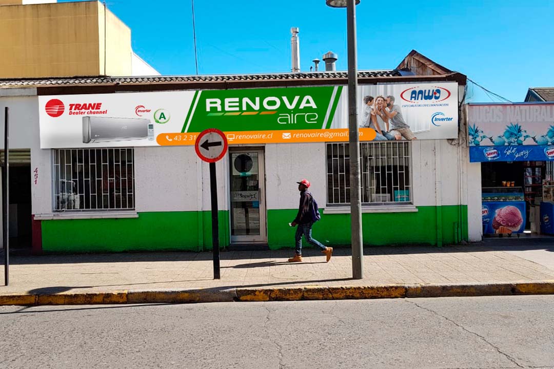 Diseño e impresión de letrero para empresa de climatización Renova Aire.