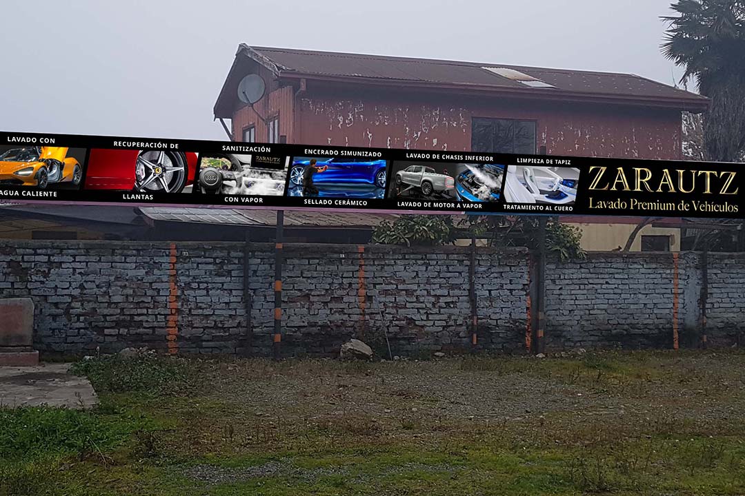 Letrero de 1200X90 cm para empresa de lavado premium Zarautz.